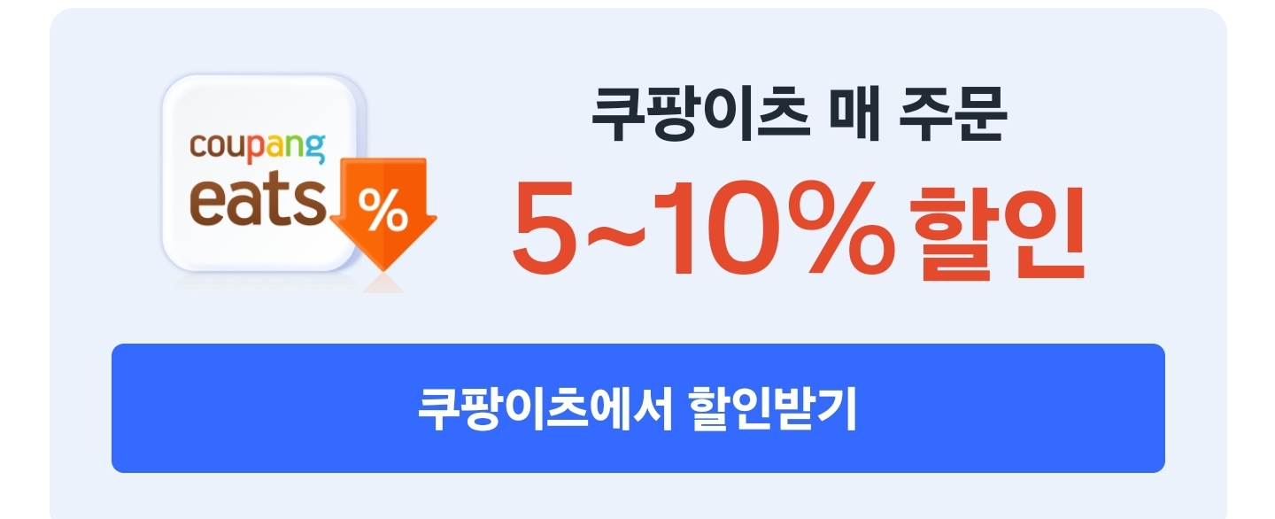 - 쿠팡이츠 5~10% 할인 + 무료배달
